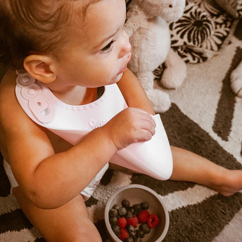 Designed with both parents and child's needs in mind, this starter set offers new self-feeders a natural way to build proper feeding skills while keeping the mess to a minimum! Extra room and easy-scoop angles in the bowl give Minis space to maneuver, while the suction foot, Roll & Lock bib and Training Spoon all made with soft food grade silicone promote healthy and safe exploration.