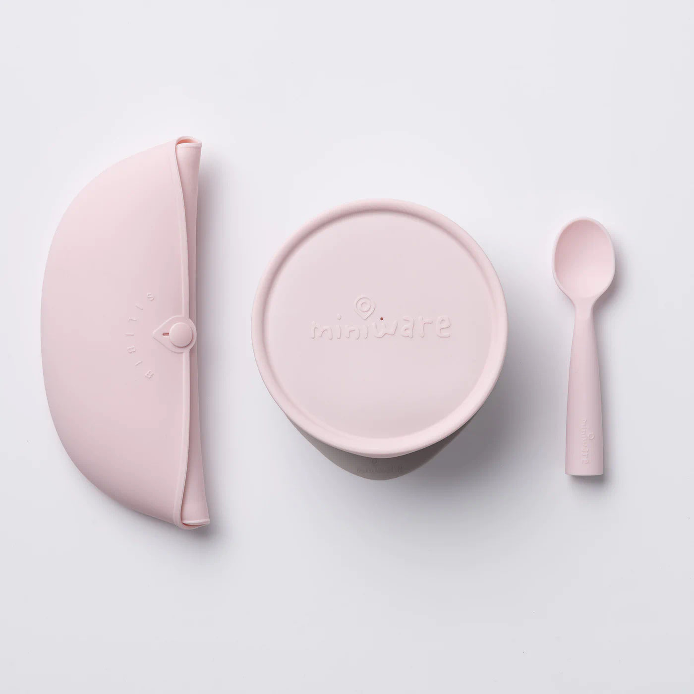 suction foot, lid, roll & lock bib and training spoon / 100% food grade silicone