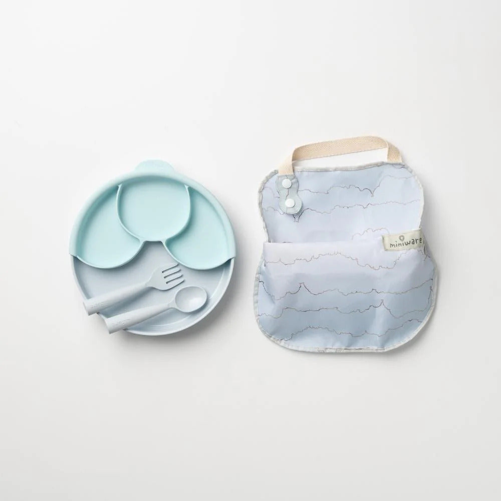 1x Sandwich Plate, 1x suction plate, 1x smart divider, 1x Catch & Cover, 1x My First Cutlery